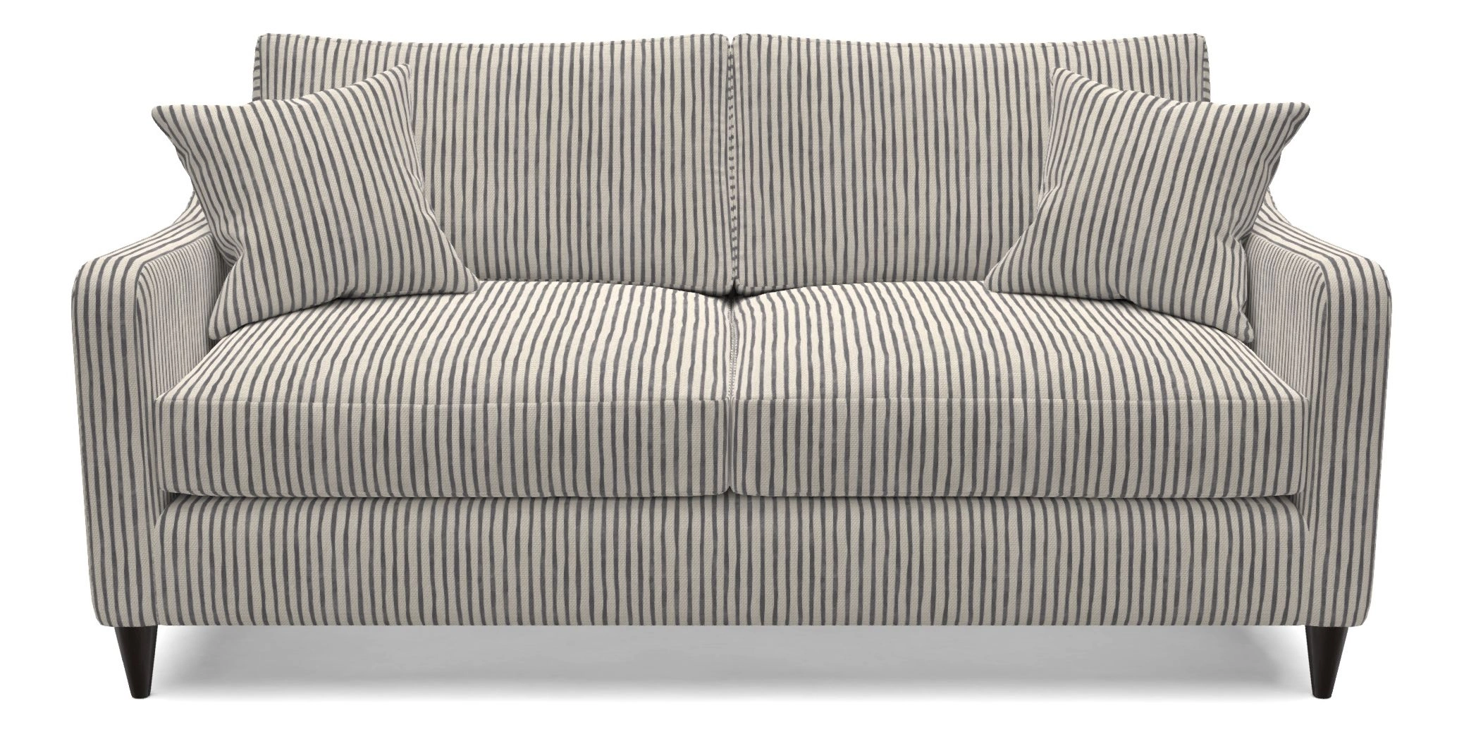 A compact, contemporary sofa with comfortable cushioned seat and back, and a sleek dipped arm design. Its streamlined silhouette and medium seat depth make it an ideal choice for smaller spaces.