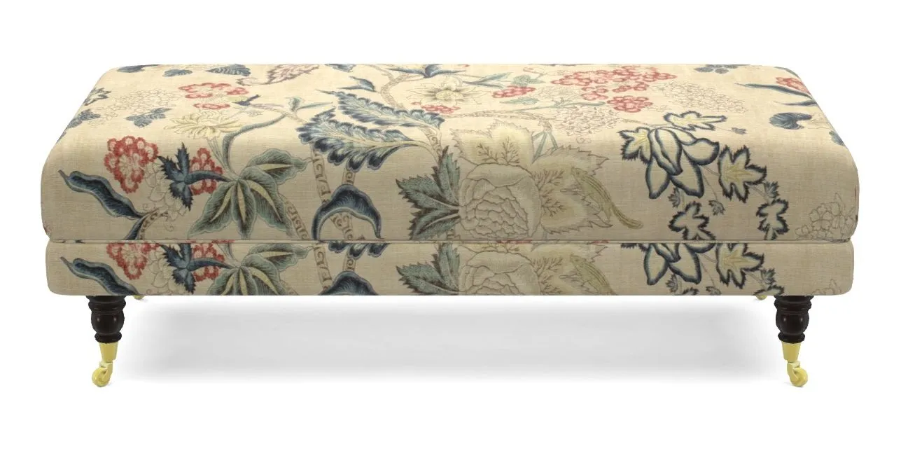 Alwinton Bespoke Large Footstools in Floral Linen : Alice in Wonderland Nude Raspberry