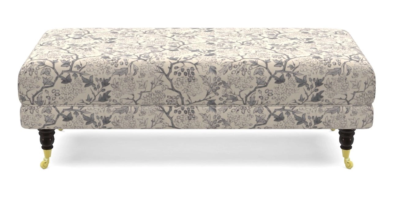 • Alwinton Bespoke Large Footstools in RHS Collection - Gertrude Jekyll Linen Cotton Blend : Navy