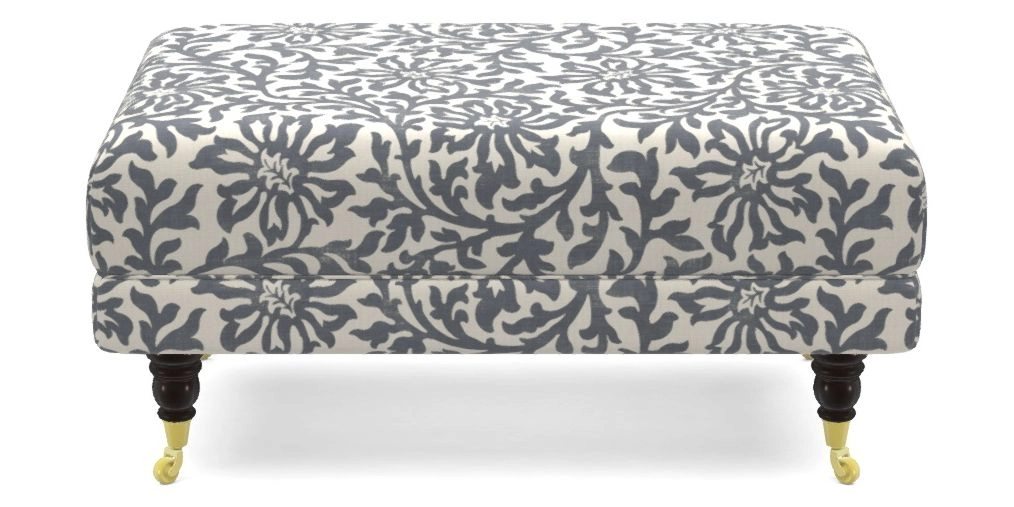 Alwinton Bespoke Small Footstools in V&A Brompton Collection - Floral Scroll : Midnight Blue