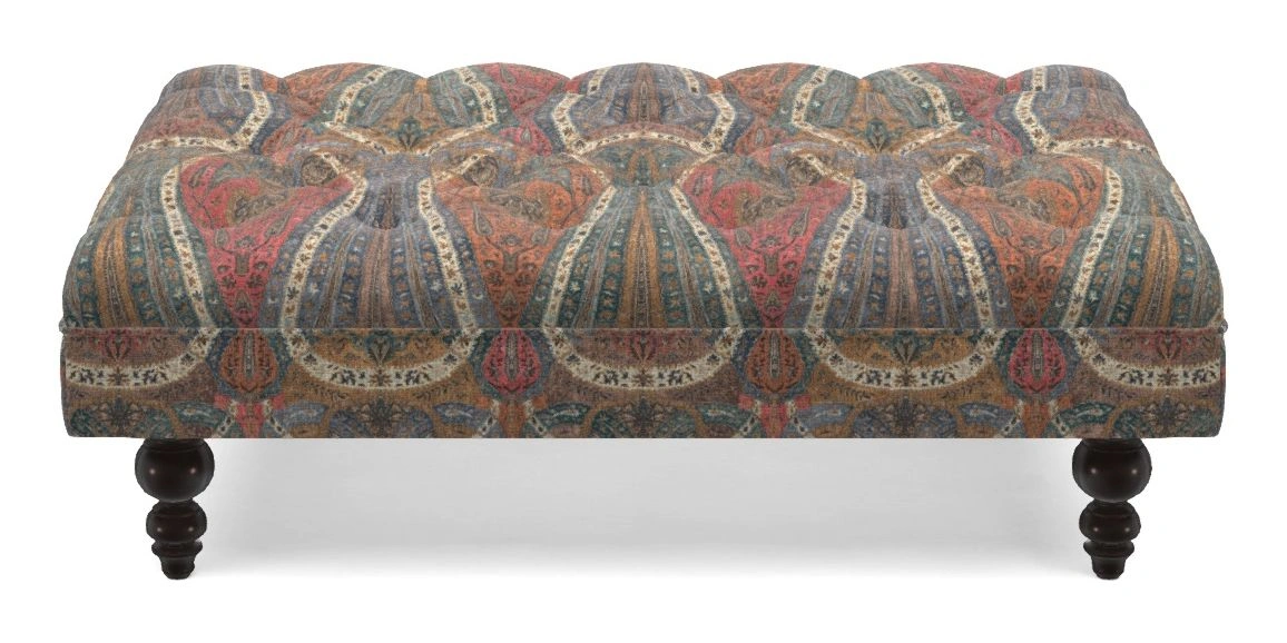 • Bedham Bespoke Standard Footstools in V&A Threads of India on Linen - Paisley Splendour : Dusk