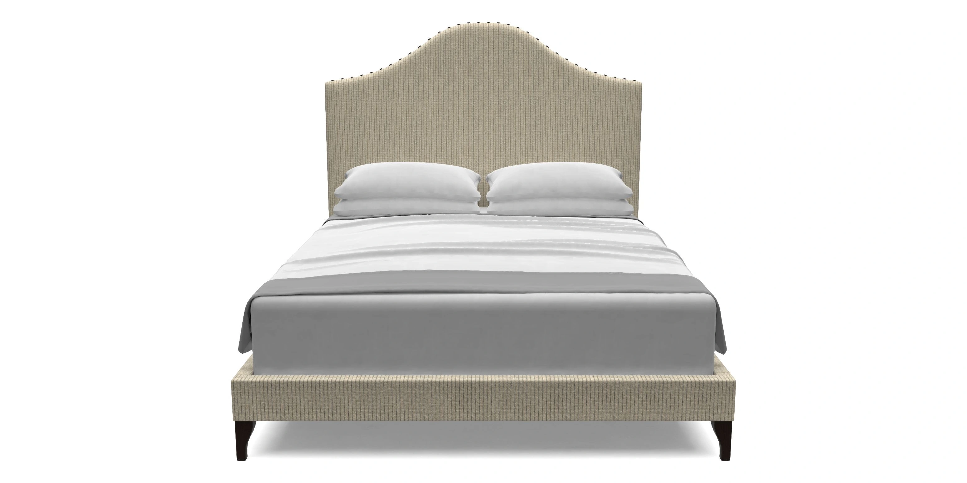 Headboard: Curved headboard with widely spread hand studding.