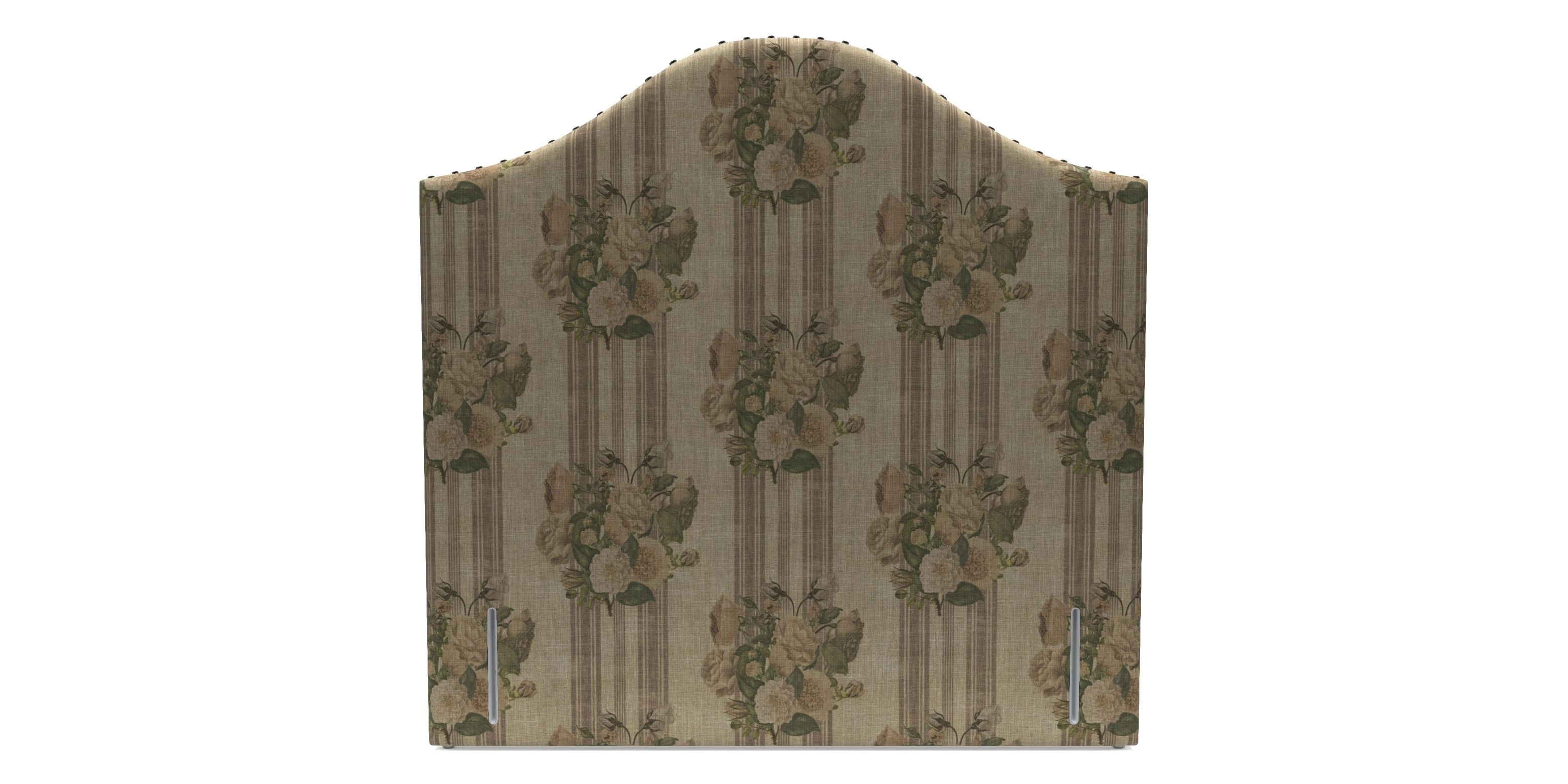 Headboard: Curved headboard with widely spread hand studding.