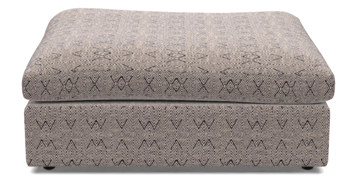 A large, cushioned box-shaped stool on dark-stained solid wood glide feet. Comfortable as a footrest and ideal for holding books, magazines, or a tray of tea and treats. View other products in this range.