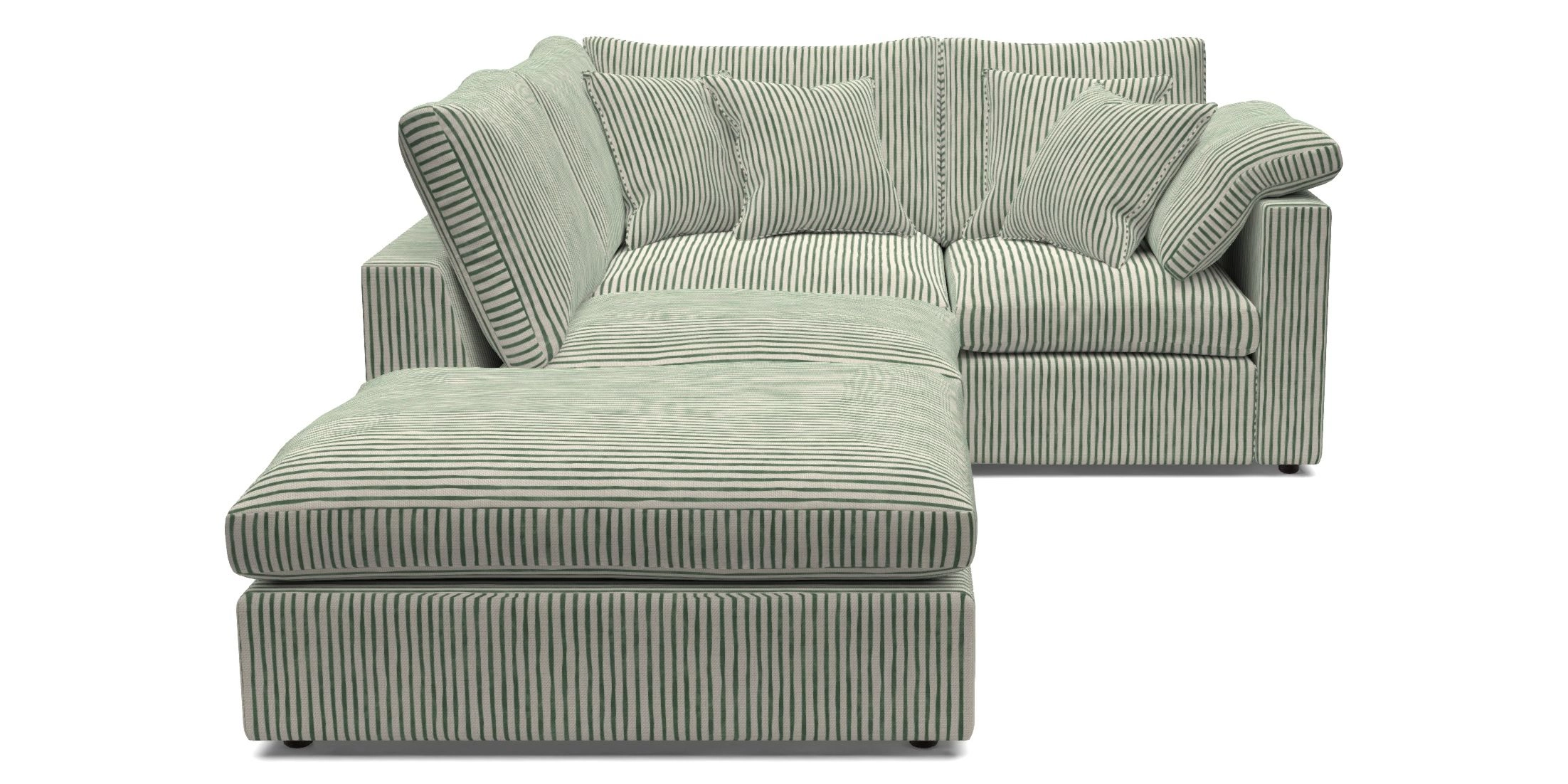Big softie straight arm Small Corner Sofa RHF in Gully Stripe : Goblin Green