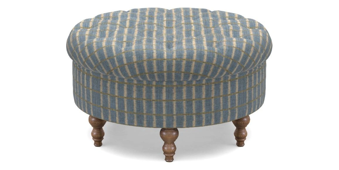Burford Bespoke Round Footstools in V&A Threads of India on Linen - Ikat Mirage : Sky