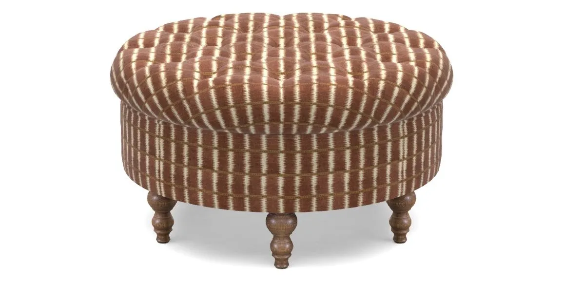 • Burford Bespoke Round Footstools in V&A Threads of India Opulent Velvets - Ikat Mirage : Burnt Umber