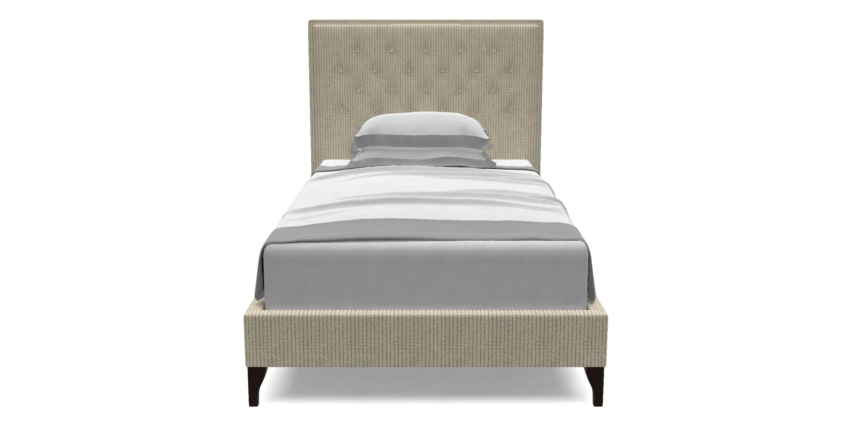 Headboard: A smart double headboard with contrast buttons and piping. It is possible to have studs instead of buttons.