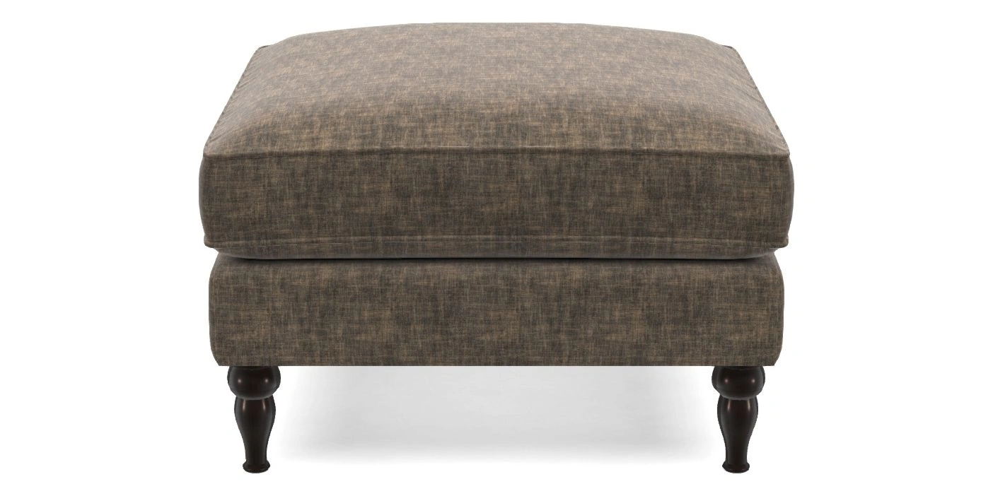 A square, deeply padded footstool with turned legs and castors, offering classic style with practicality. View other products in this range.