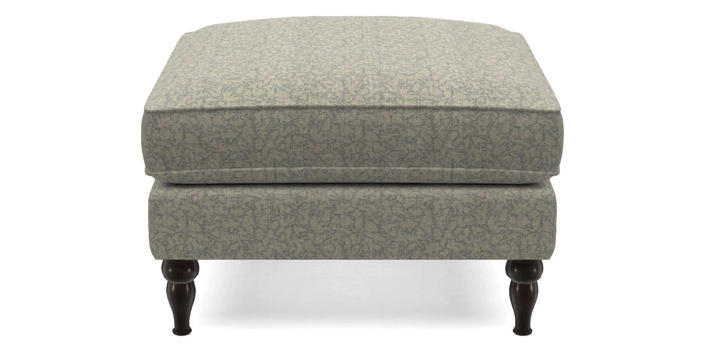 A square, deeply padded footstool with turned legs and castors, offering classic style with practicality. View other products in this range.