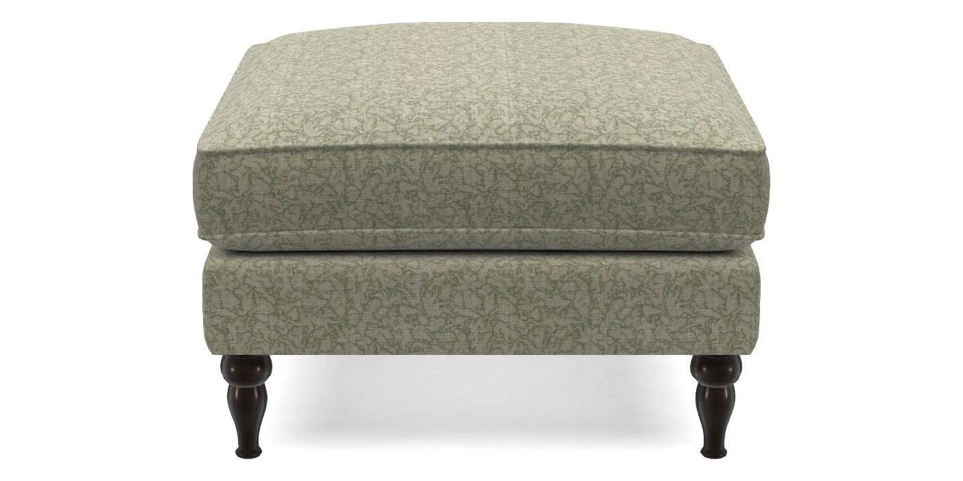 A square, deeply padded footstool with turned legs and castors, offering classic style with practicality. View other products in this range.