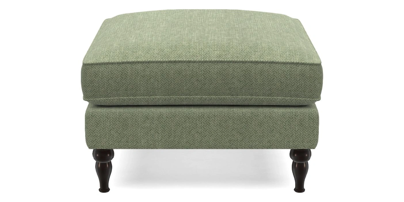 A square, deeply padded footstool with turned legs and castors, offering classic style with practicality. View other products in this range.