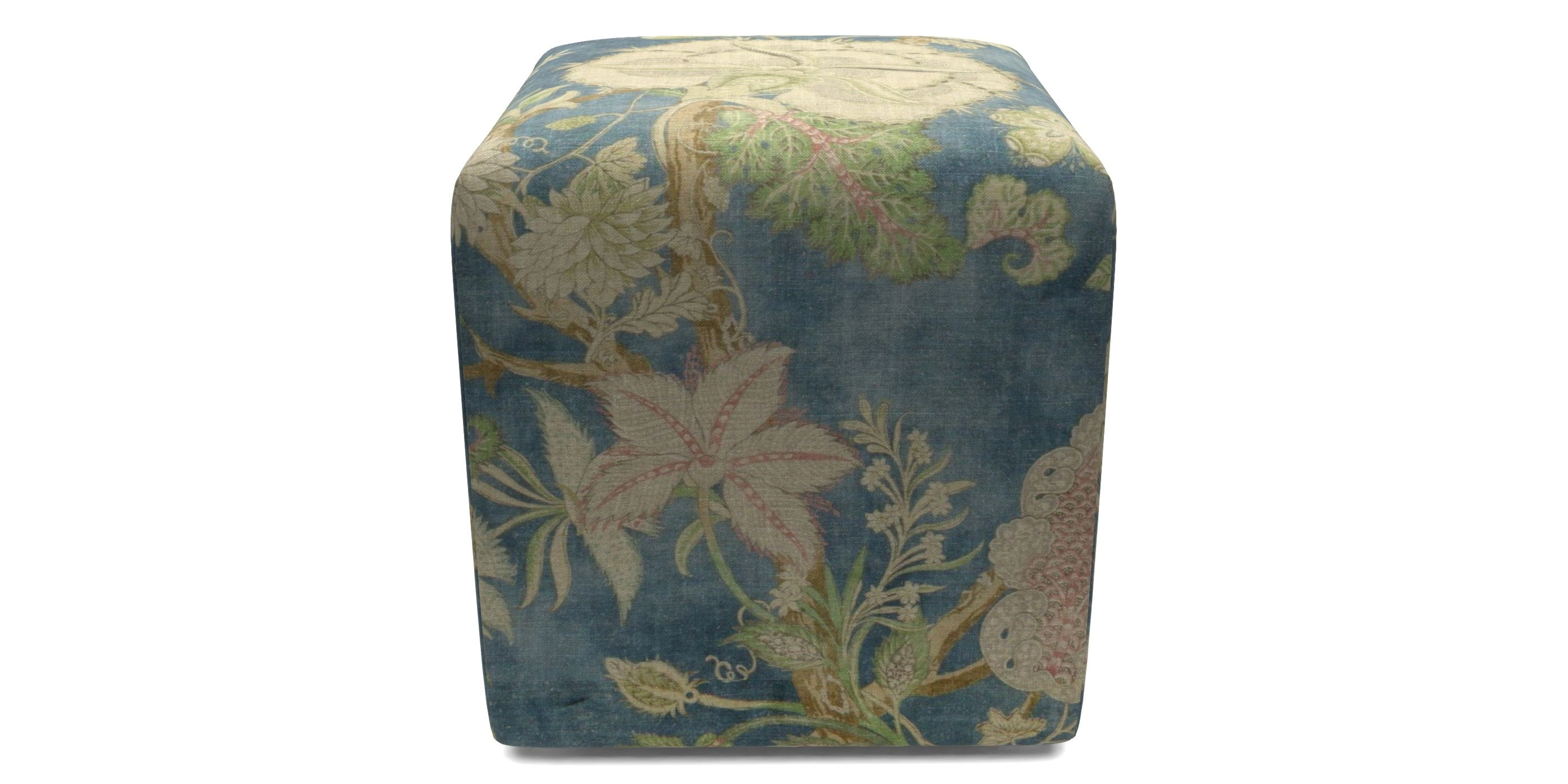 Cube Footstools in Floral Linen : Rendezvous Marine