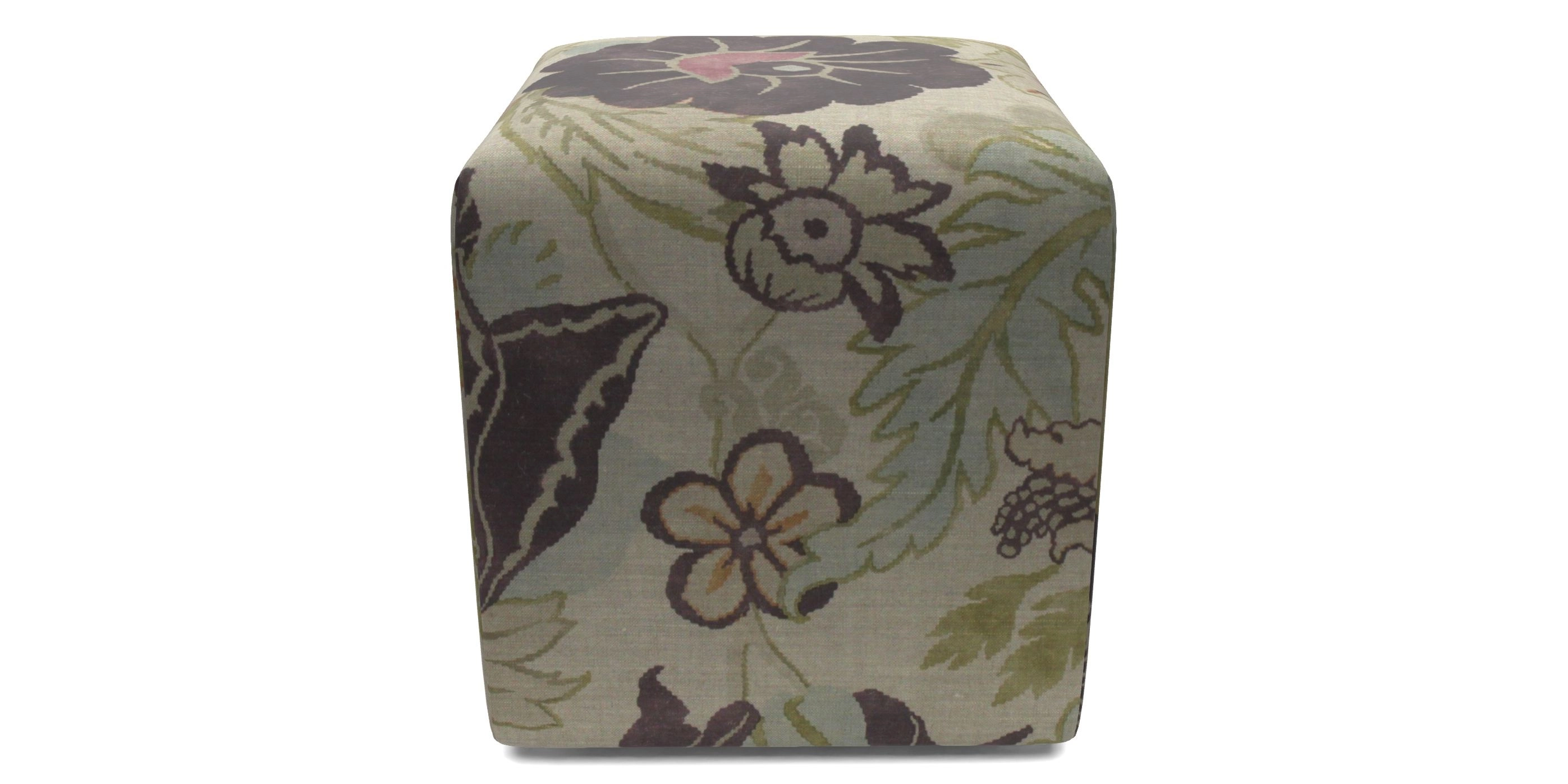 • Cube Bespoke Standard Footstools in Floral Linen : Kincsem Shadow