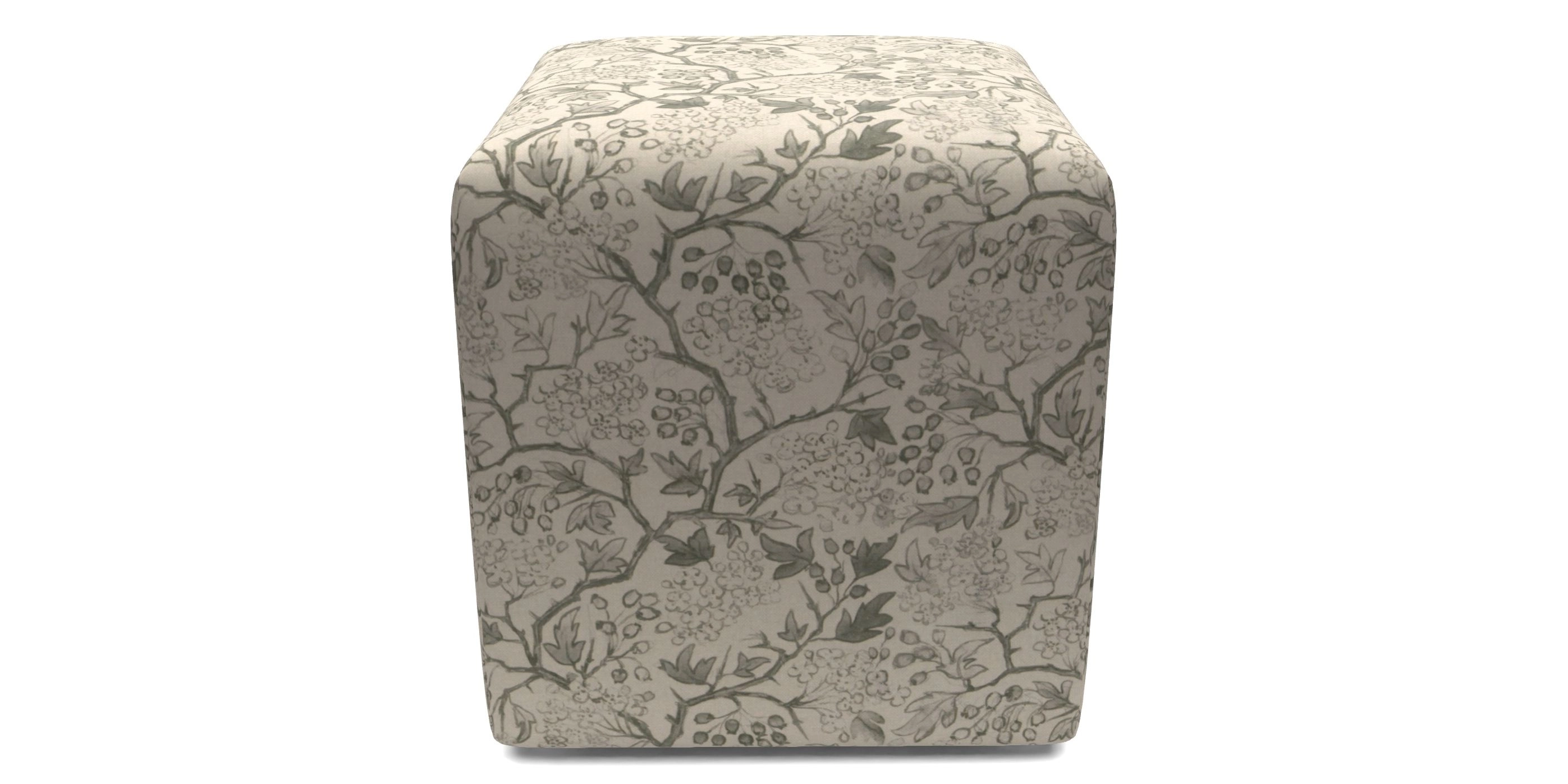 • Cube Bespoke Standard Footstools in RHS Collection - Gertrude Jekyll Linen Cotton Blend : Green