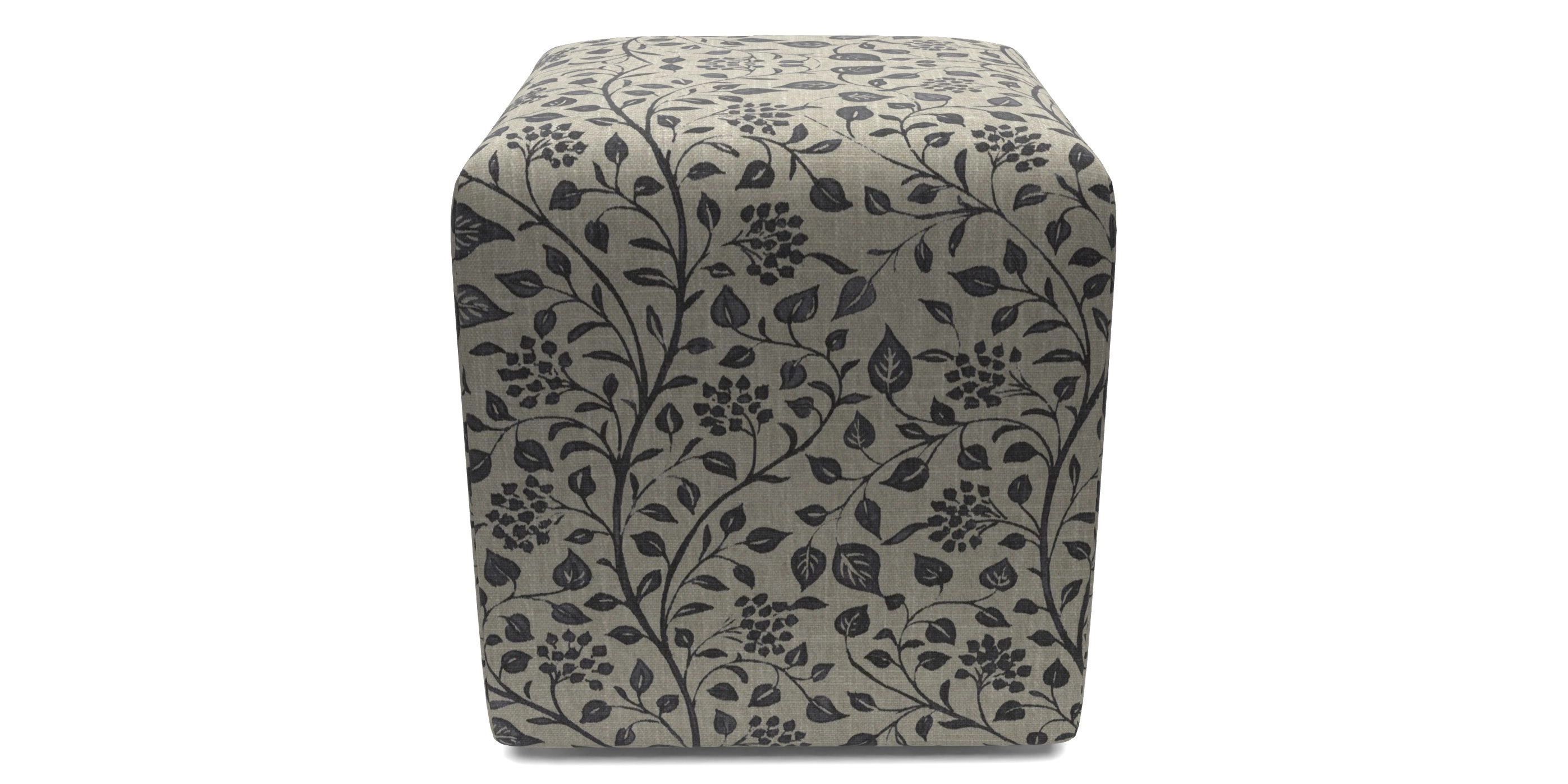Cube Bespoke Standard Footstools in RHS Collection - Gertrude Jekyll Trailing Vine : Navy