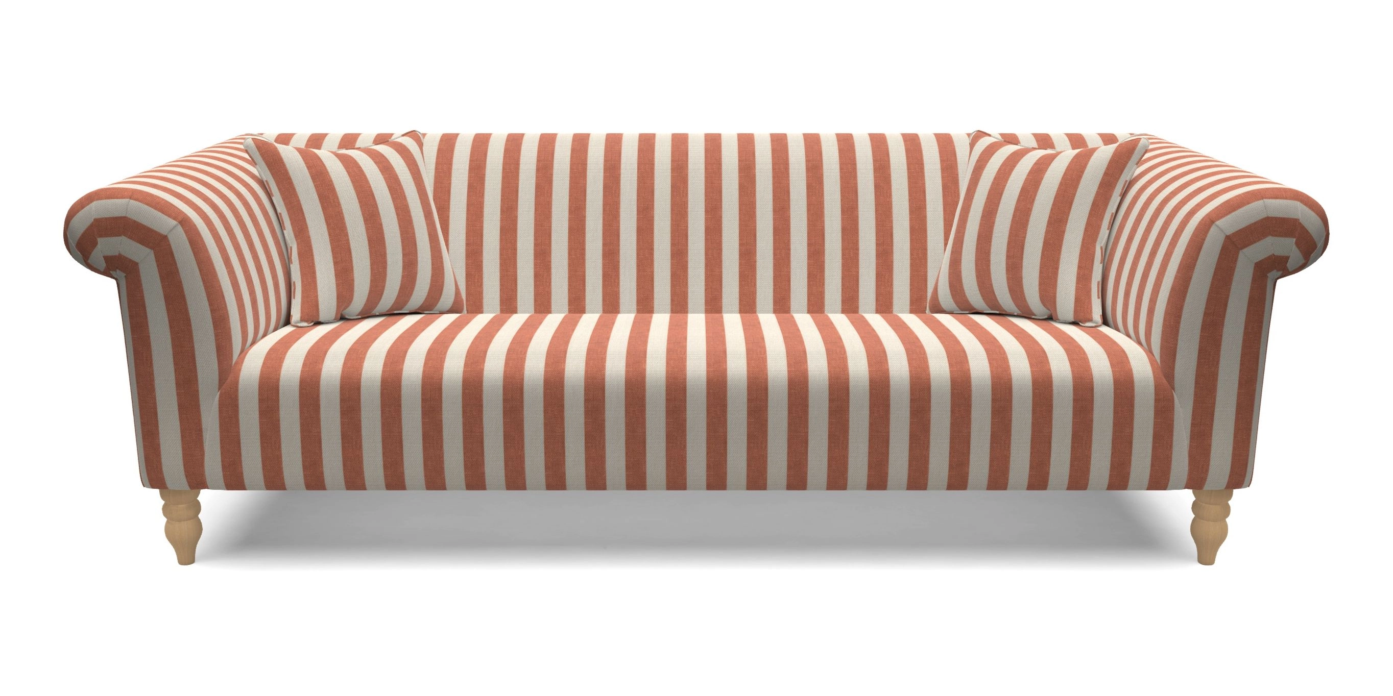 • Exbury 3 Seater Sofa in Ganton Woven Linen Stripe Red with Scatters in Carthorpe and Hovingham Woven Linen Stripe Red