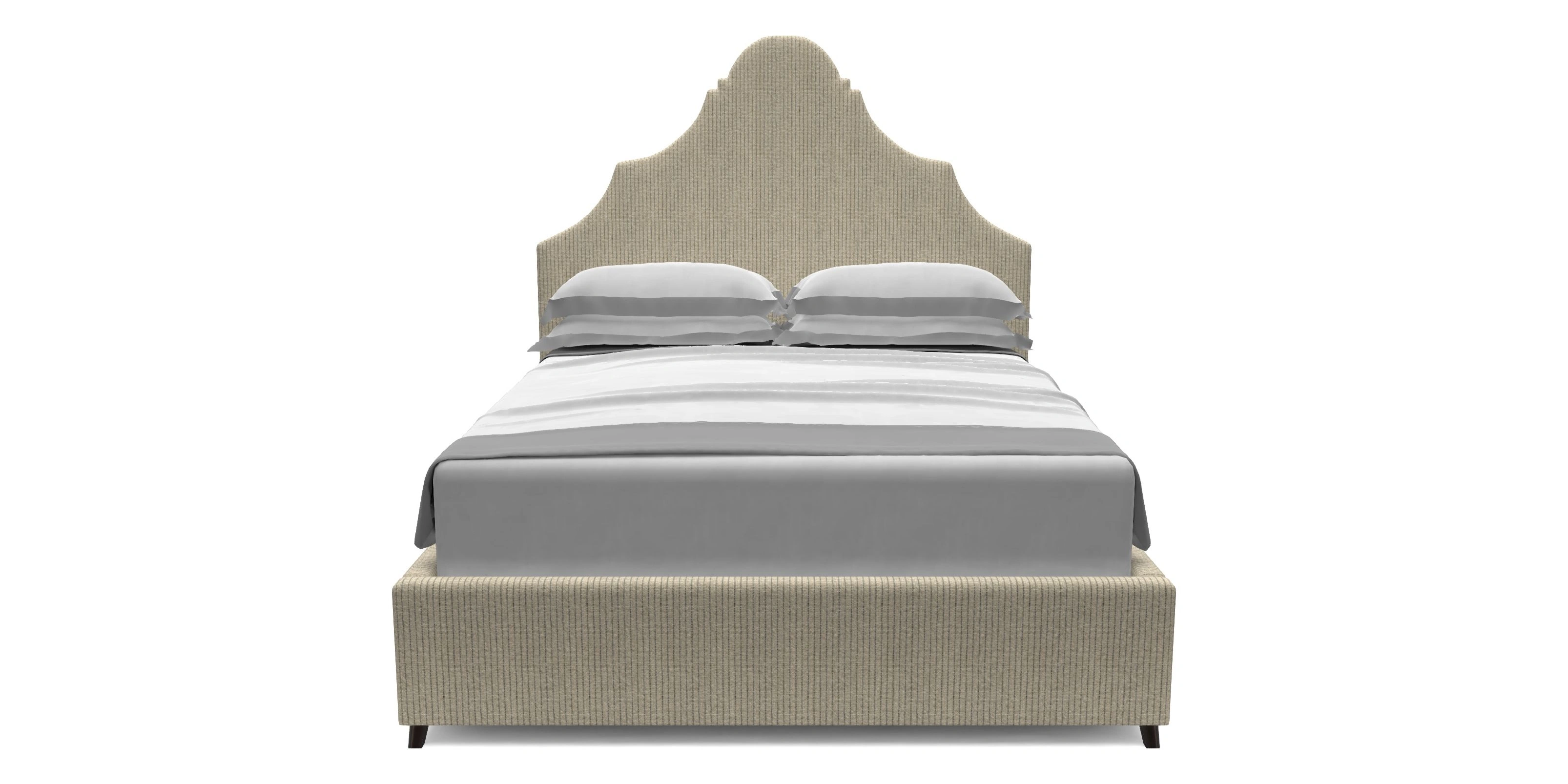 Headboard: Deeply curved headboard.