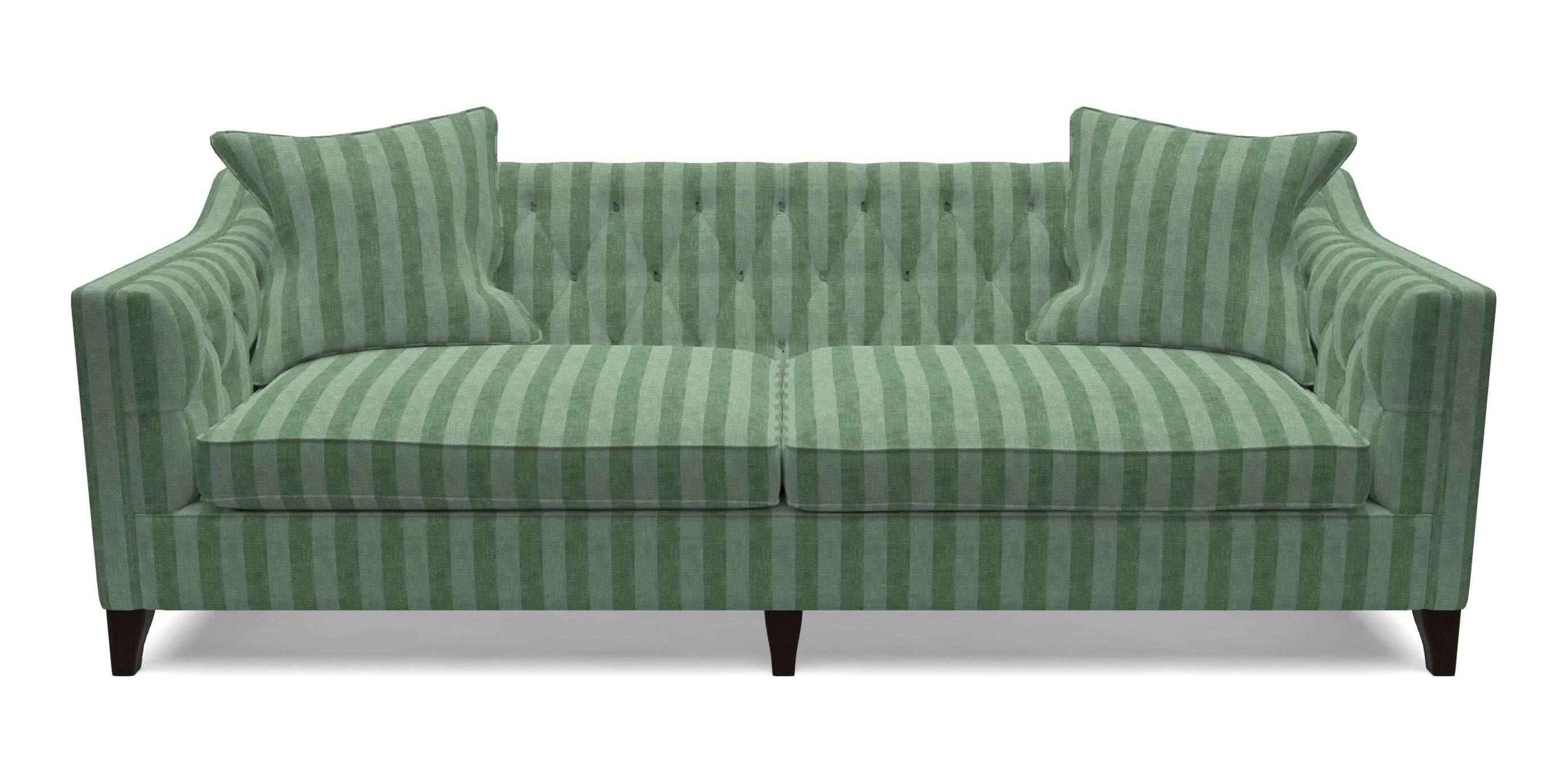 • Haresfield Dipped Arm Bespoke 4 Seater Sofa in Furrow Stripe Narrow : Goblin Green