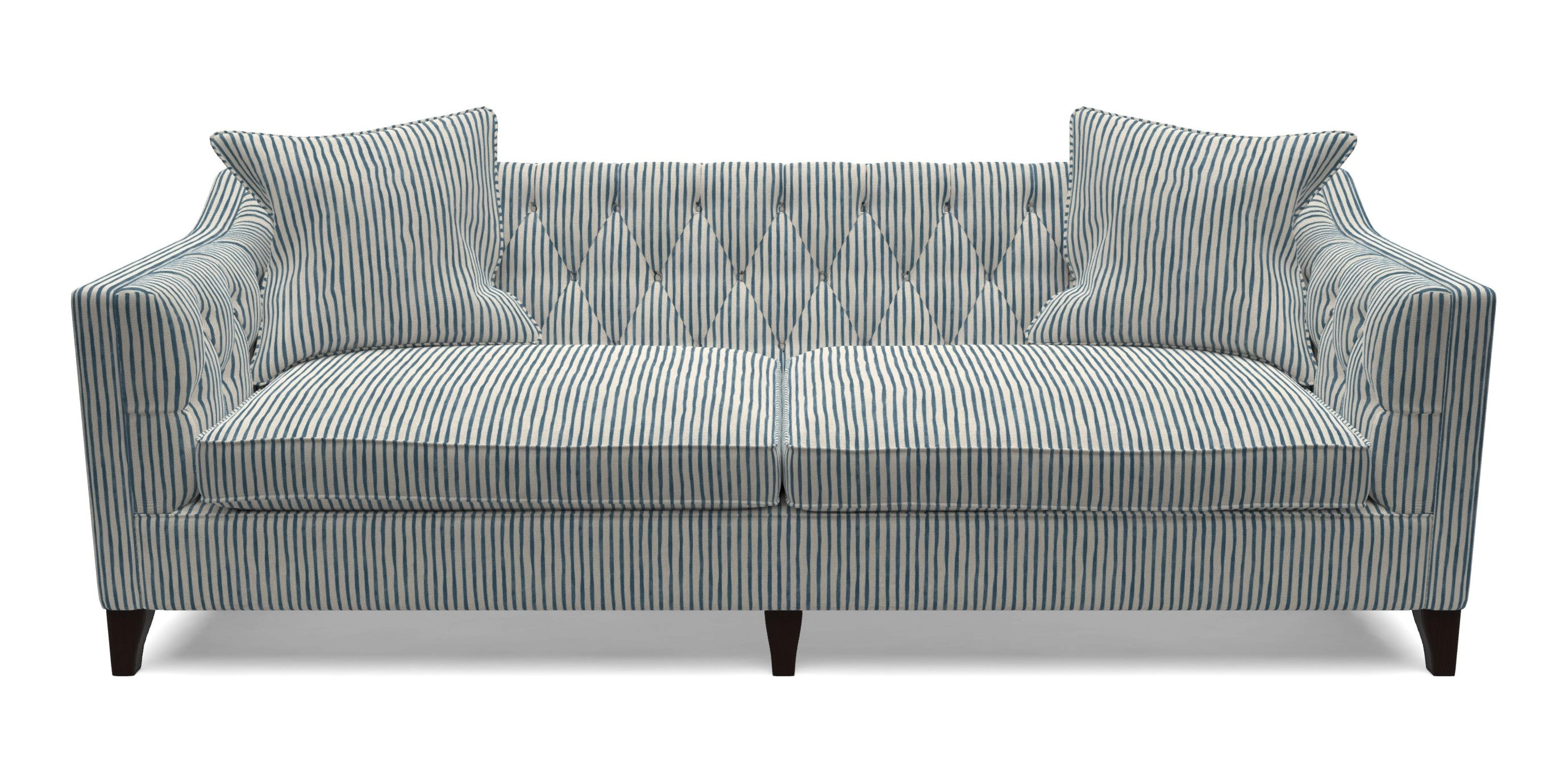 Haresfield Dipped Arm Bespoke 4 Seater Sofa in Gully Stripe : Azure