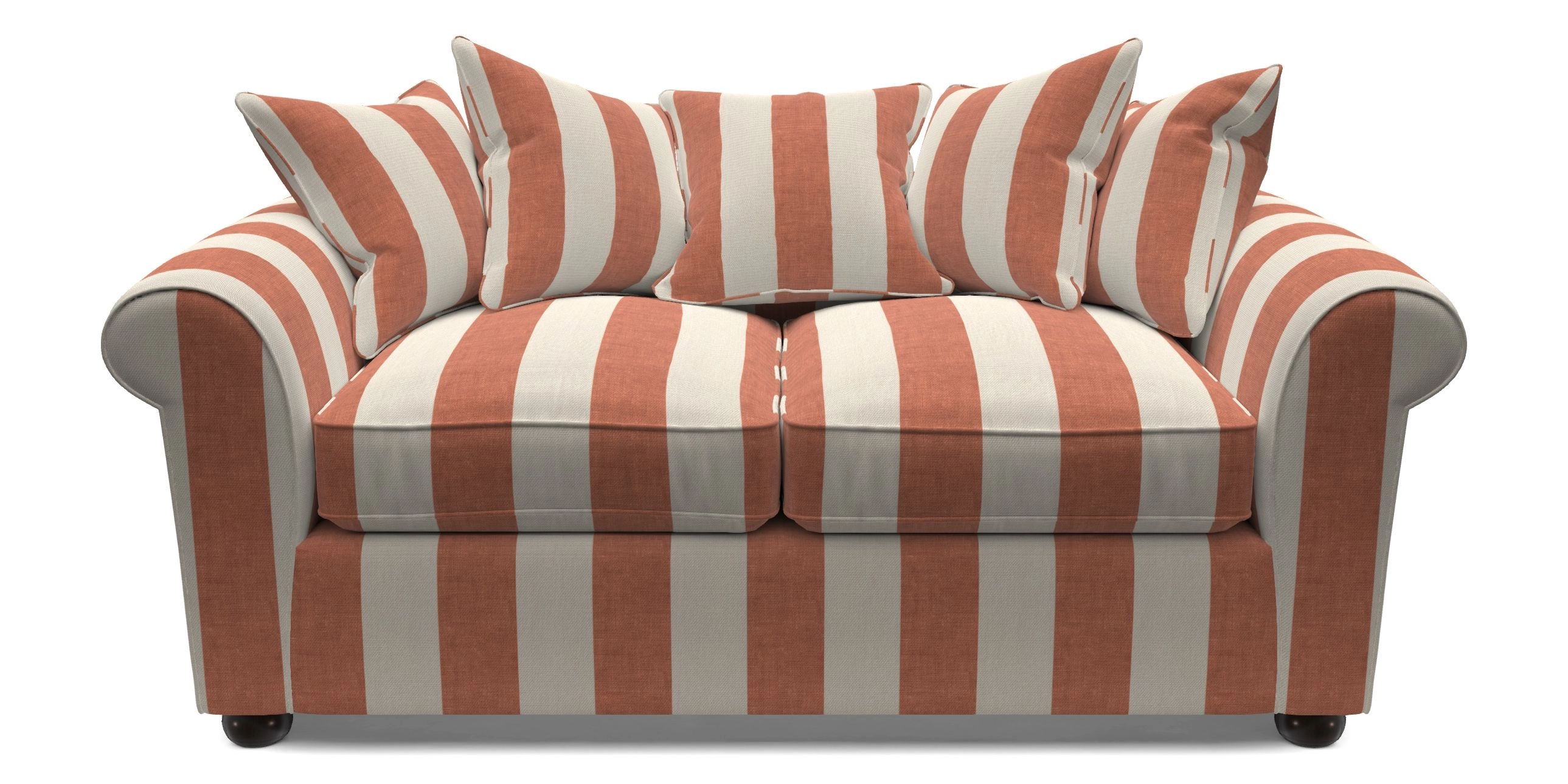 • Lewes 3 Seater Sofa in Walloon Stripe Red with Scatters in Walloon & Linwood Luna