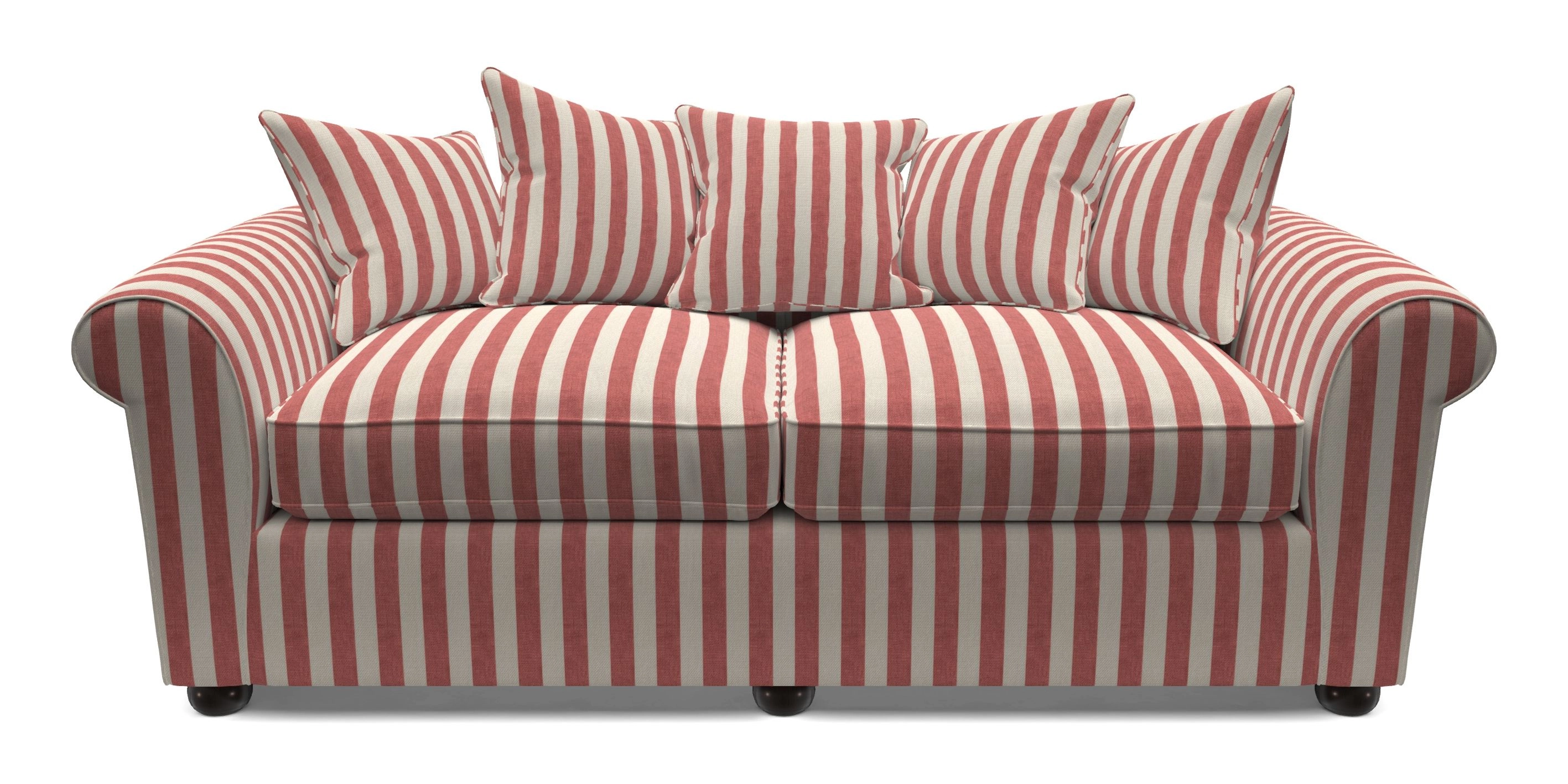 • Lewes 3 Seater Sofa in Walloon Stripe Red with Scatters in Walloon & Linwood Luna