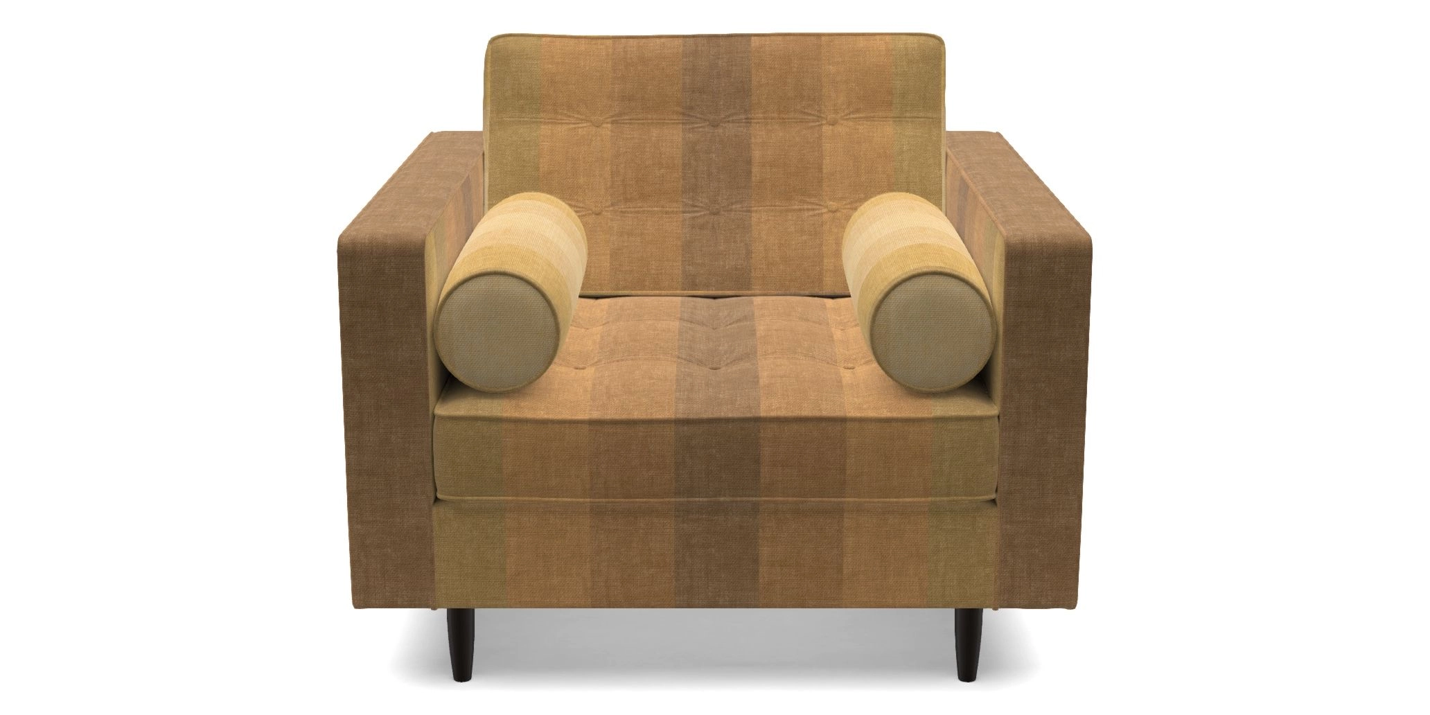 The Marylebone typifies mid-century design with clean square lines, buttoning, and low square arms. Its angular silhouette is complemented by a deep comfy seat and round bolster cushions, offering a chic yet comfortable seating option.