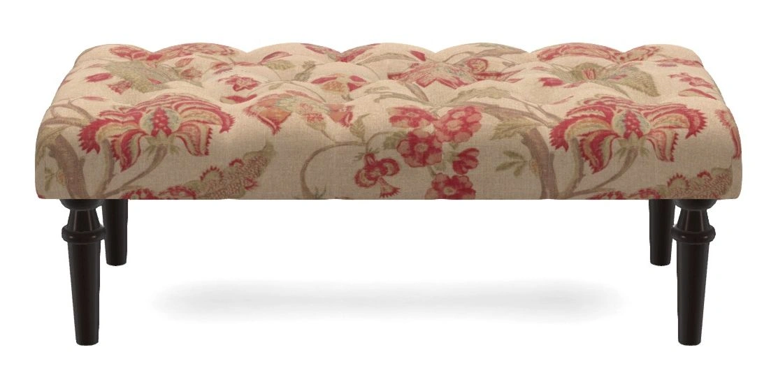 Pentlow Bespoke Small Buttoned Footstools in Floral Linen : Indienne T Rosso
