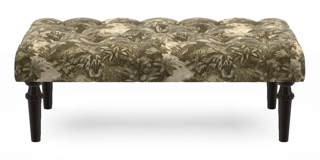 Pentlow Bespoke Small Buttoned Footstools in RHS Botanicals on Velvet - Ferns Toile : RHS Botanicals on Velvet - Ferns Toile Olive