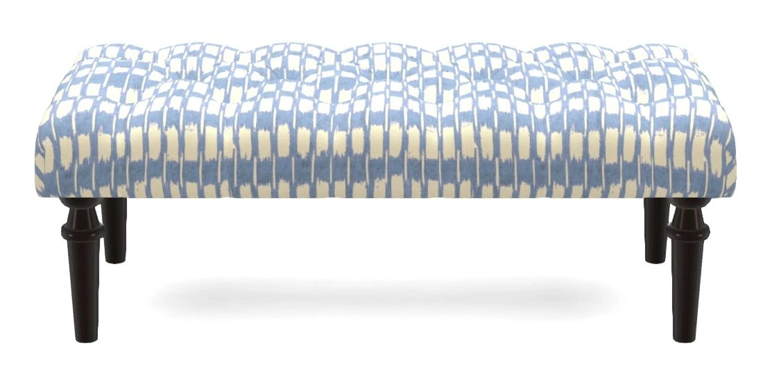 Pentlow Bespoke Small Buttoned Footstools in V&A Brompton Collection - Ikat : Morning Blue