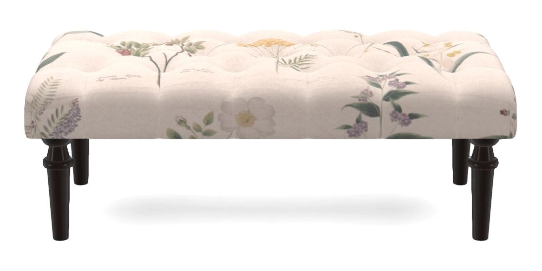 Pentlow Bespoke Small Buttoned Footstools in RHS Collection - Lydia Penrose Design : Flowers Linen
