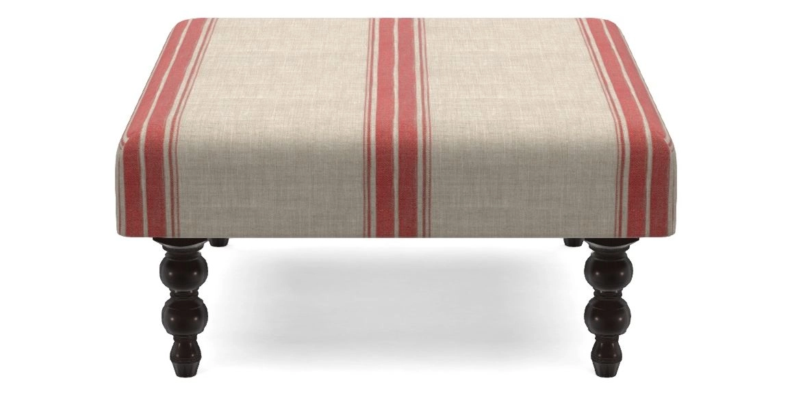 • Porthallow Bespoke Footstools C in Woven Linen Stripe - Ganton : Ganton Woven Linen Stripe Red