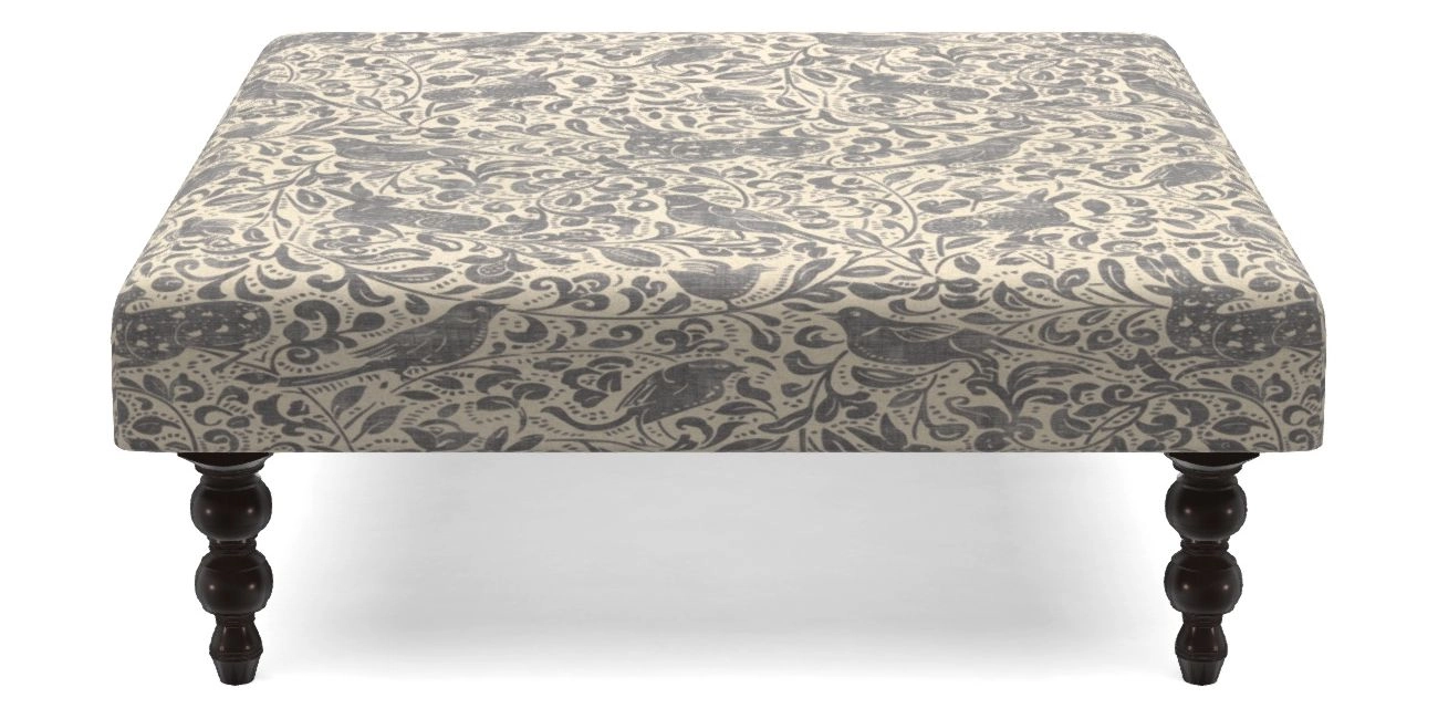 Porthallow Bespoke Footstools D in V&A Drawn From Nature - Bird and Rabbit : Navy