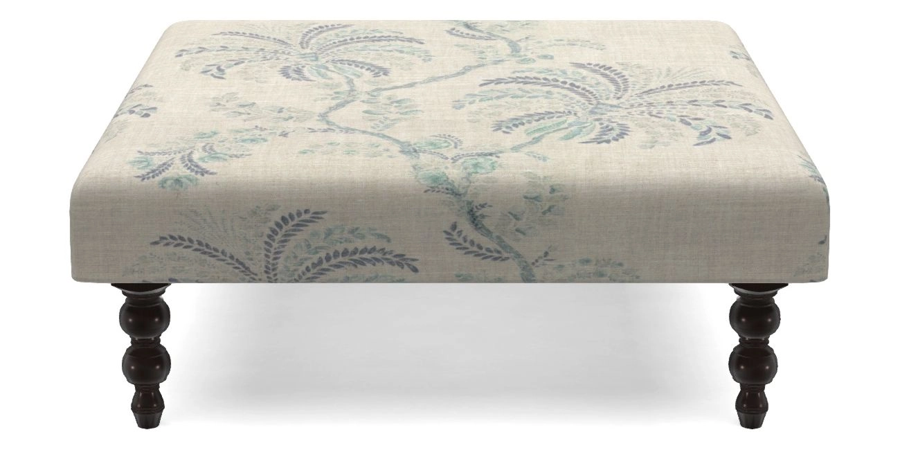 • Porthallow Bespoke Footstools D in Floral Linen : Filicopsida Batik