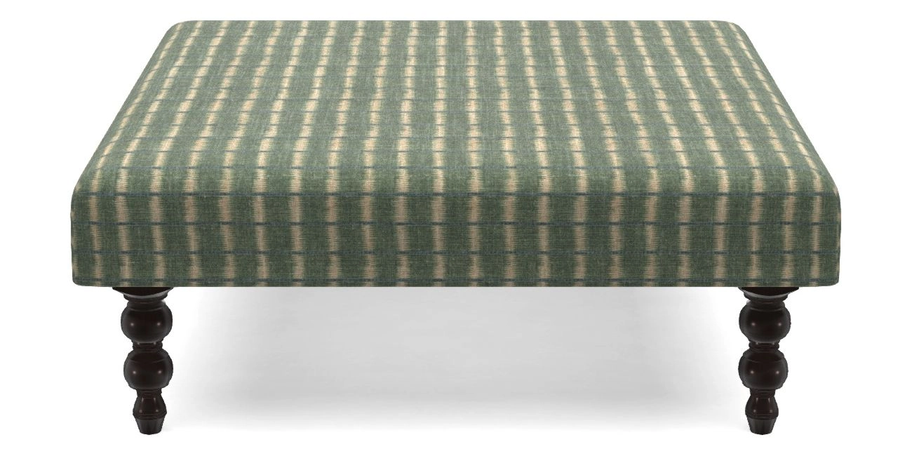 Porthallow Bespoke Footstools D in V&A Threads of India on Linen - Ikat Mirage : Forest