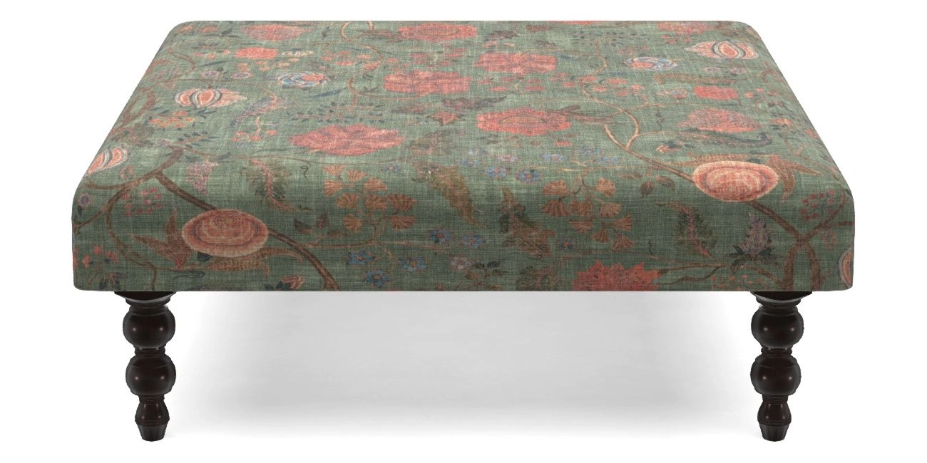Porthallow Bespoke Footstools D in V&A Threads of India on Linen - Tree of Life : Forest