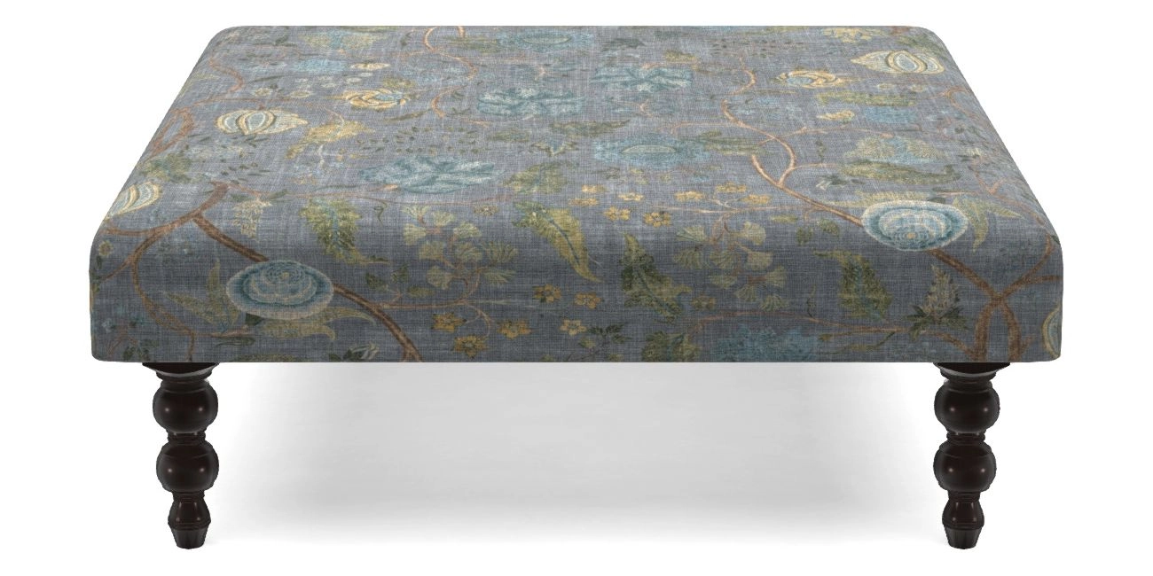 Porthallow Bespoke Footstools D in V&A Threads of India on Linen - Tree of Life : Lavender