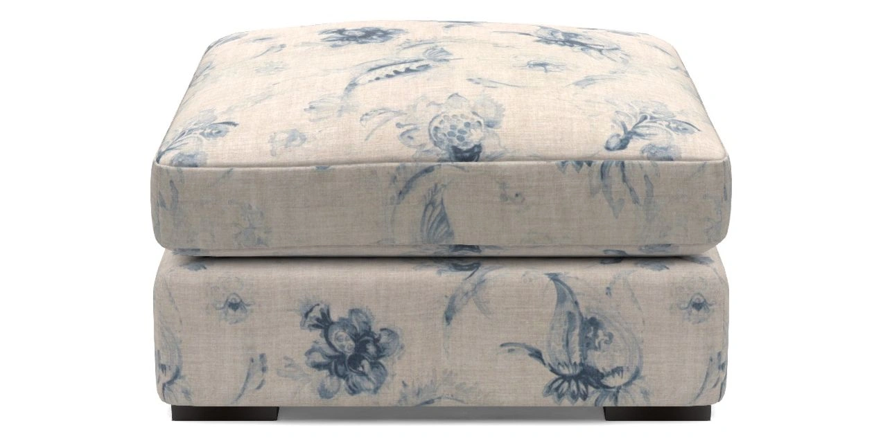 • Stockbridge Bespoke Combi Footstools in Floral Linen : Lela Mystery Indigo