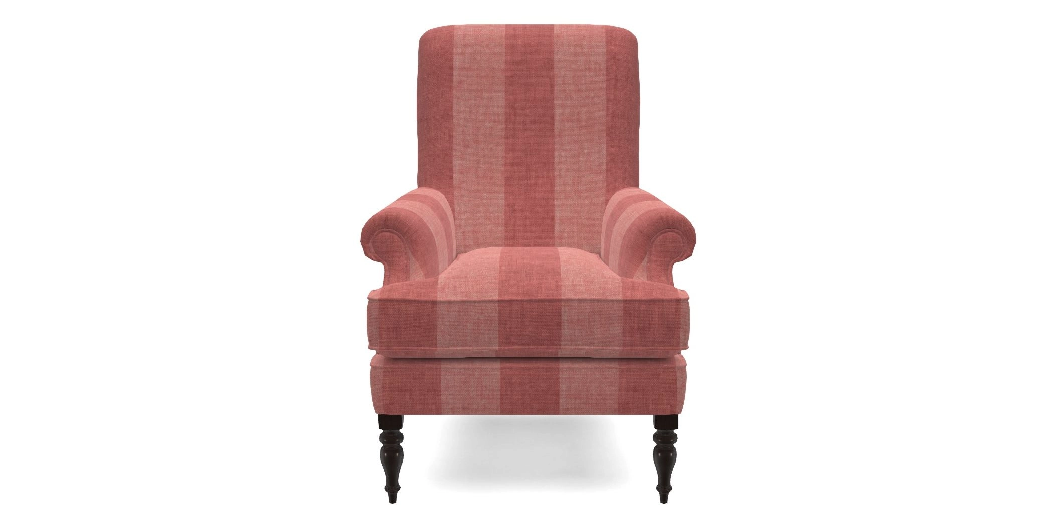 A classic armchair design with a compact profile, featuring a fixed back, and deep, cushioned seat. Its inset scroll arms and self-piped detailing add a touch of refinement, while the firm seat and high back ensure both comfort and support.