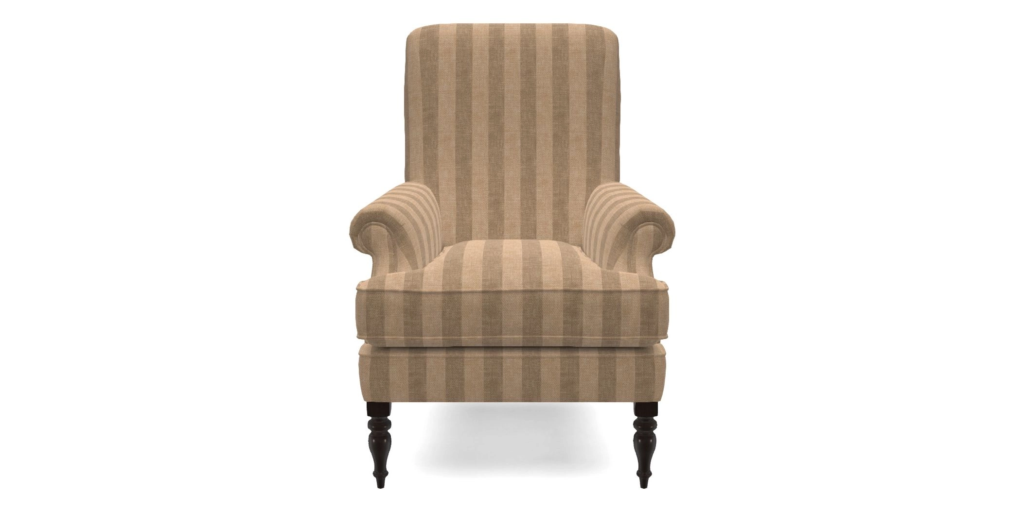 A classic armchair design with a compact profile, featuring a fixed back, and deep, cushioned seat. Its inset scroll arms and self-piped detailing add a touch of refinement, while the firm seat and high back ensure both comfort and support.