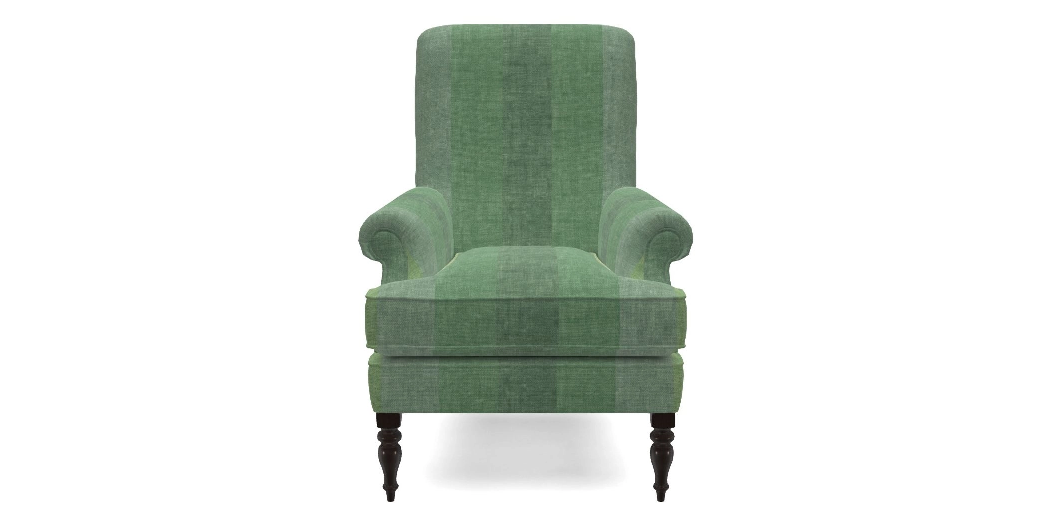 A classic armchair design with a compact profile, featuring a fixed back, and deep, cushioned seat. Its inset scroll arms and self-piped detailing add a touch of refinement, while the firm seat and high back ensure both comfort and support.