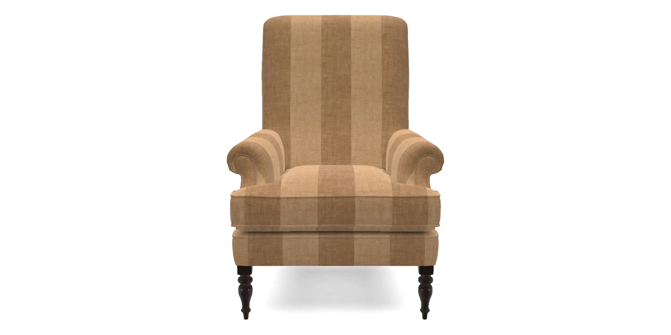 A classic armchair design with a compact profile, featuring a fixed back, and deep, cushioned seat. Its inset scroll arms and self-piped detailing add a touch of refinement, while the firm seat and high back ensure both comfort and support.