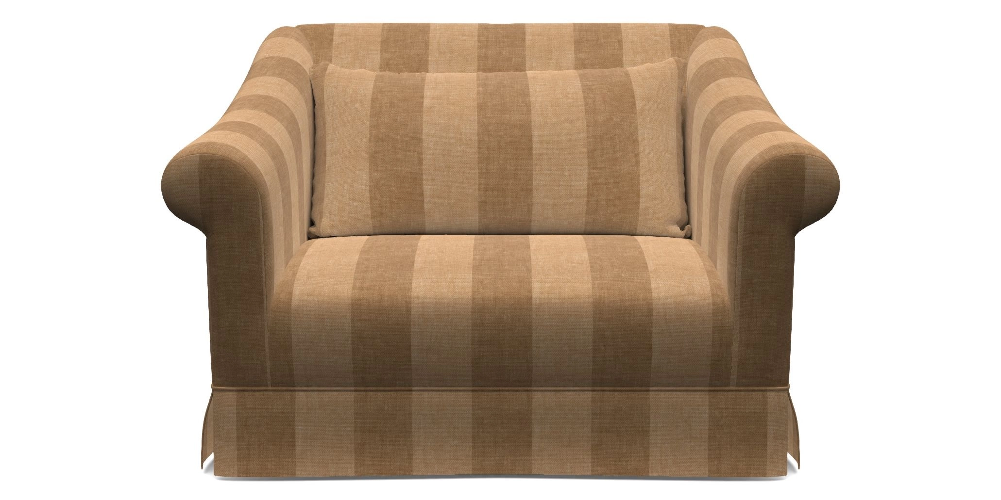 The Turnberry is a modern classic British design, with high sprung back for firm support with gently curved scroll arms. Finished with three scatter cushions, and a skirt front.