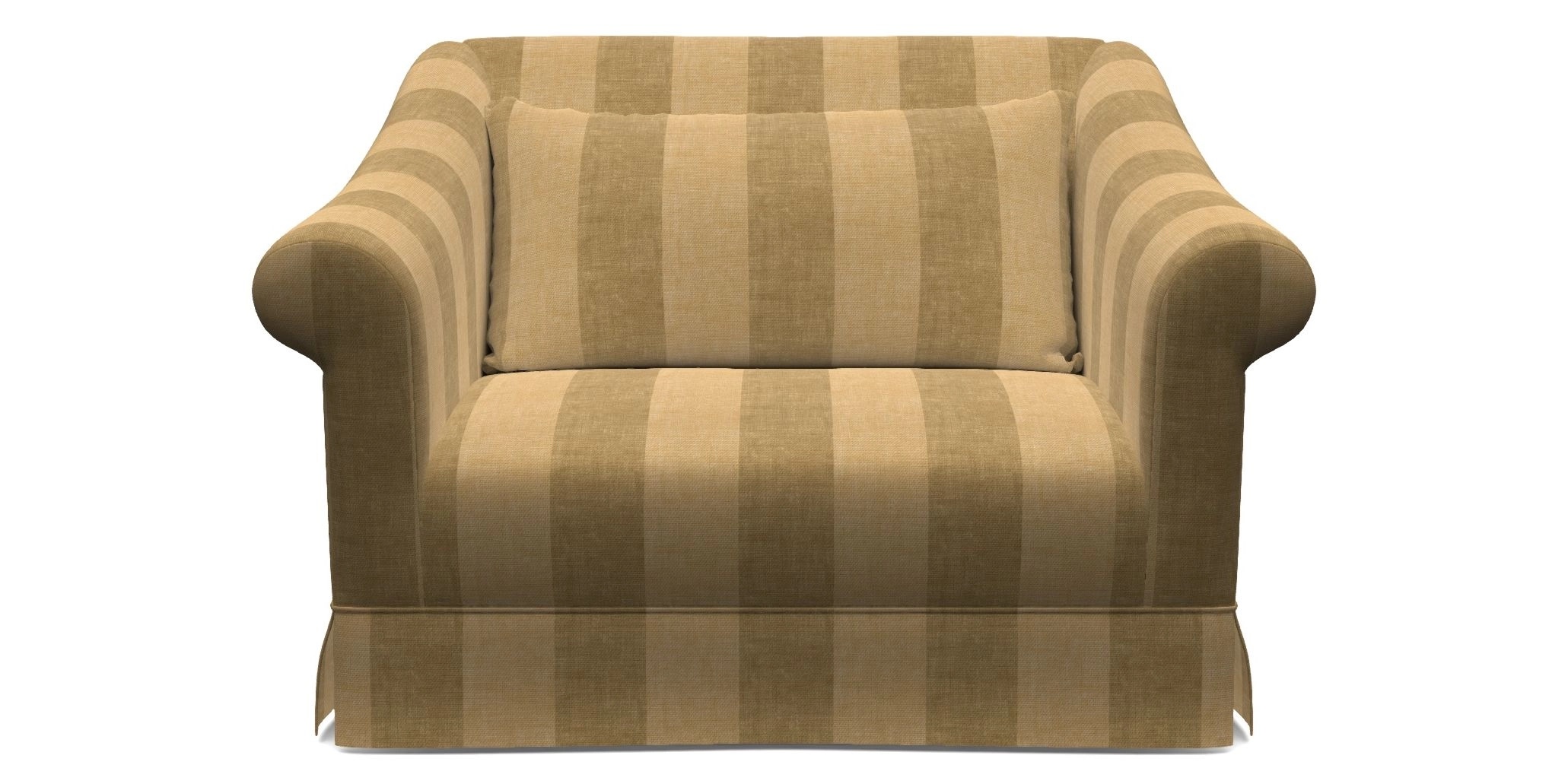 The Turnberry is a modern classic British design, with high sprung back for firm support with gently curved scroll arms. Finished with three scatter cushions, and a skirt front.