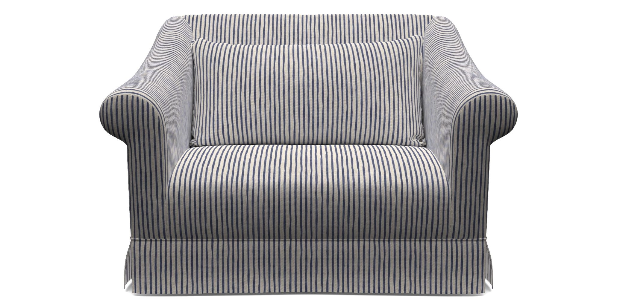 The Turnberry is a modern classic British design, with high sprung back for firm support with gently curved scroll arms. Finished with three scatter cushions, and a skirt front.