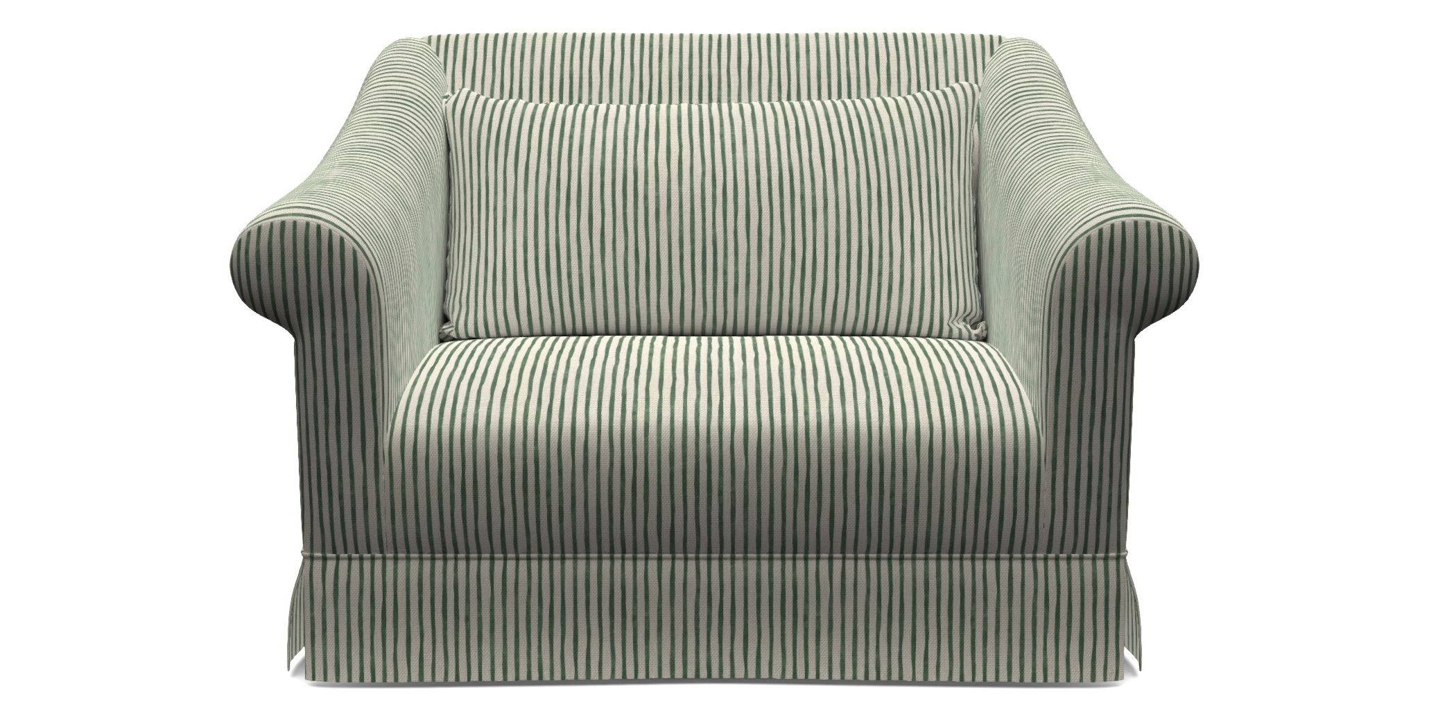The Turnberry is a modern classic British design, with high sprung back for firm support with gently curved scroll arms. Finished with three scatter cushions, and a skirt front.