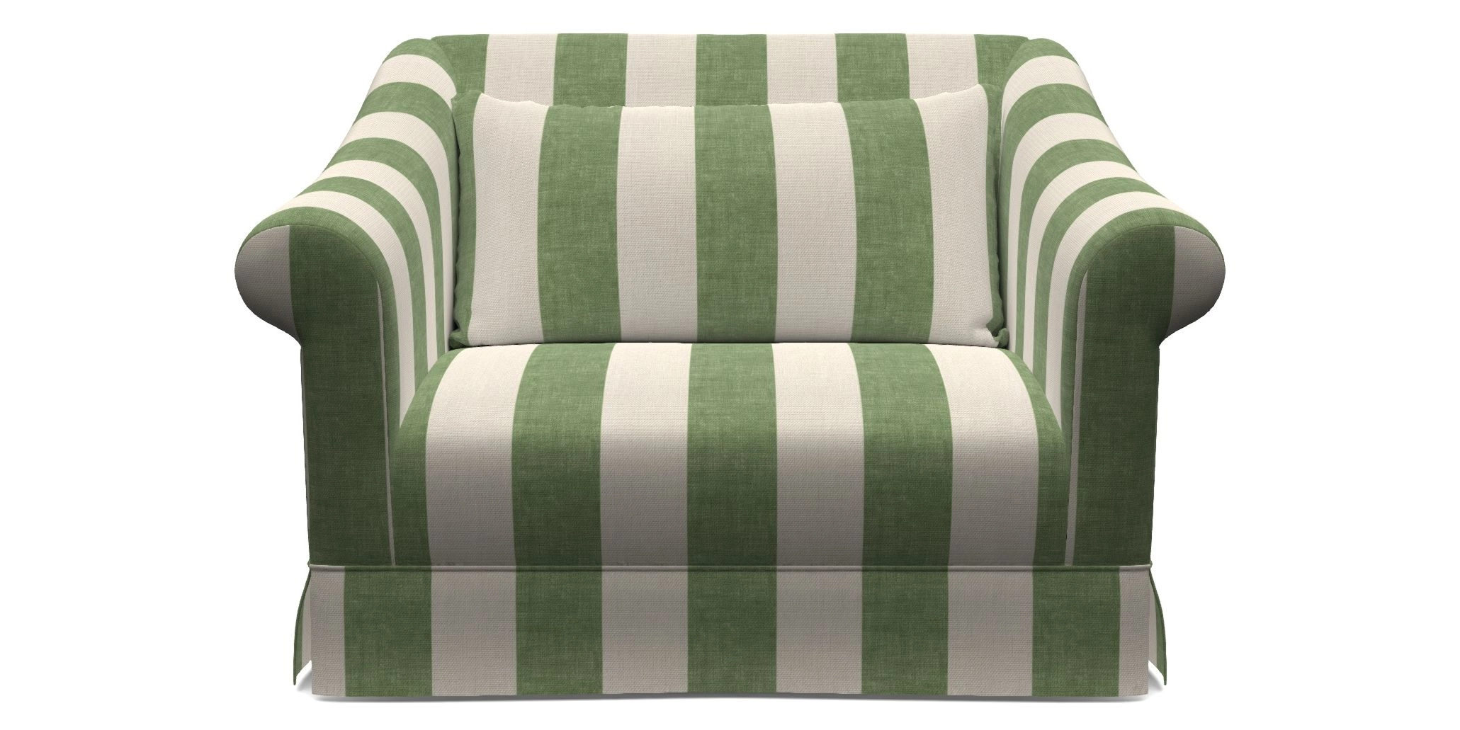 The Turnberry is a modern classic British design, with high sprung back for firm support with gently curved scroll arms. Finished with three scatter cushions, and a skirt front.
