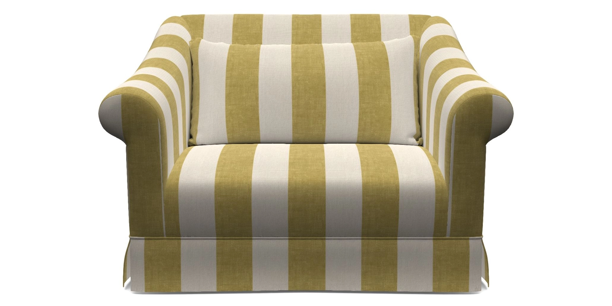 The Turnberry is a modern classic British design, with high sprung back for firm support with gently curved scroll arms. Finished with three scatter cushions, and a skirt front.