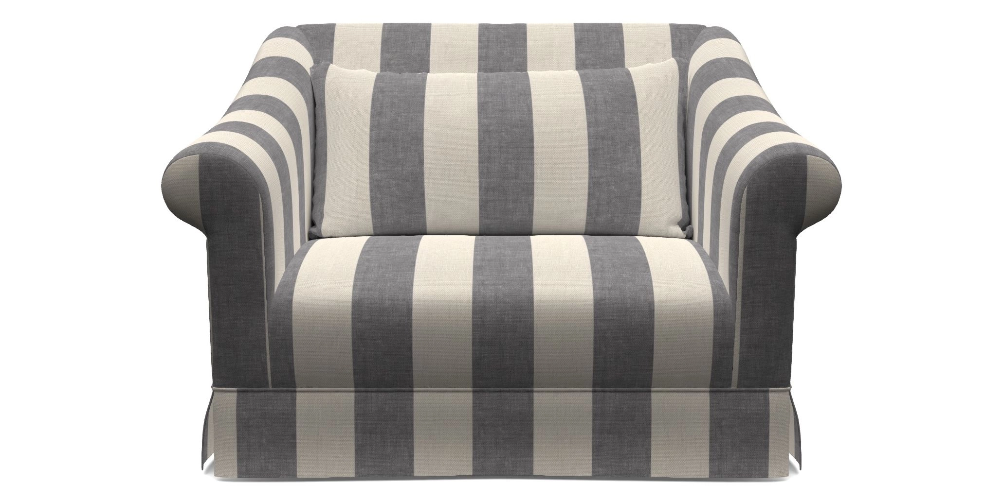 The Turnberry is a modern classic British design, with high sprung back for firm support with gently curved scroll arms. Finished with three scatter cushions, and a skirt front.