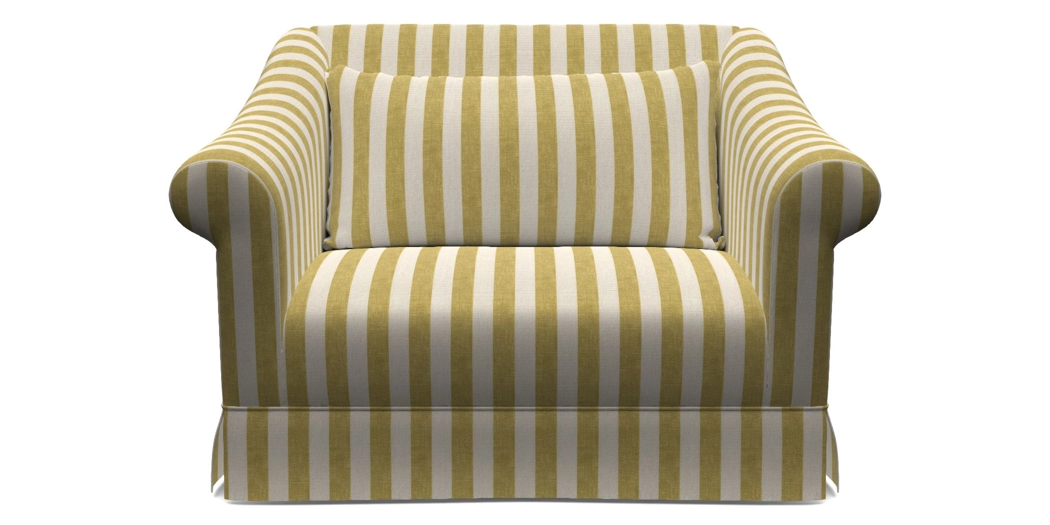 The Turnberry is a modern classic British design, with high sprung back for firm support with gently curved scroll arms. Finished with three scatter cushions, and a skirt front.